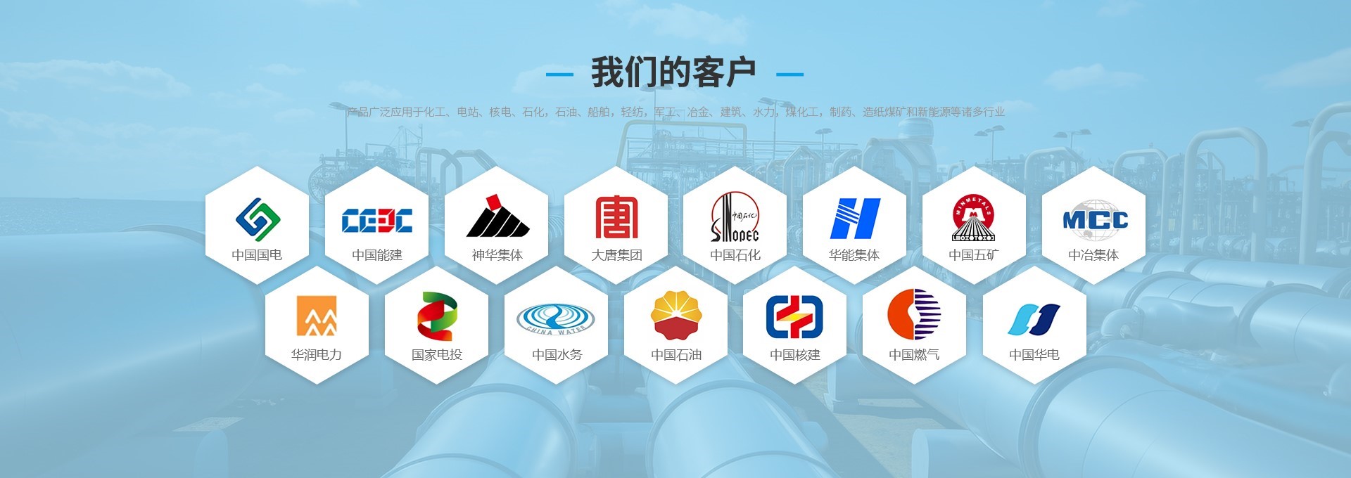 產品廣泛應用于化工、電站、石化,石油、船舶、冶金、建筑、水力,煤化工,制藥、造紙煤礦和新能源等諸多行業。暢銷世界,深受國內外用戶的好評!